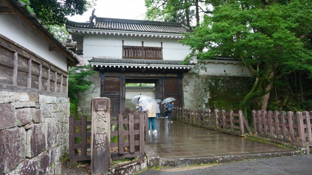杉の並木道に囲まれた復元大手門をくぐると、静かな本丸跡が広がります。苔むした石垣や、杉の香りが漂う風景はとても幻想的です。